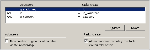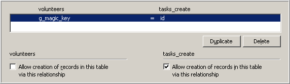 3. Add a new predicate to the relationship between volunteers and tasks_create, linking the fields you created in steps 1 and 2.